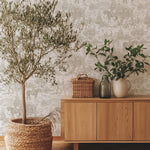 The muted palette allows the design to feel calm and lived-in, making it a natural choice for bedrooms, dining rooms, offices, and cozy sitting areas. Whether paired with natural wood, linen textiles, or layered neutrals, this wallpaper brings depth and character while remaining easy to style.