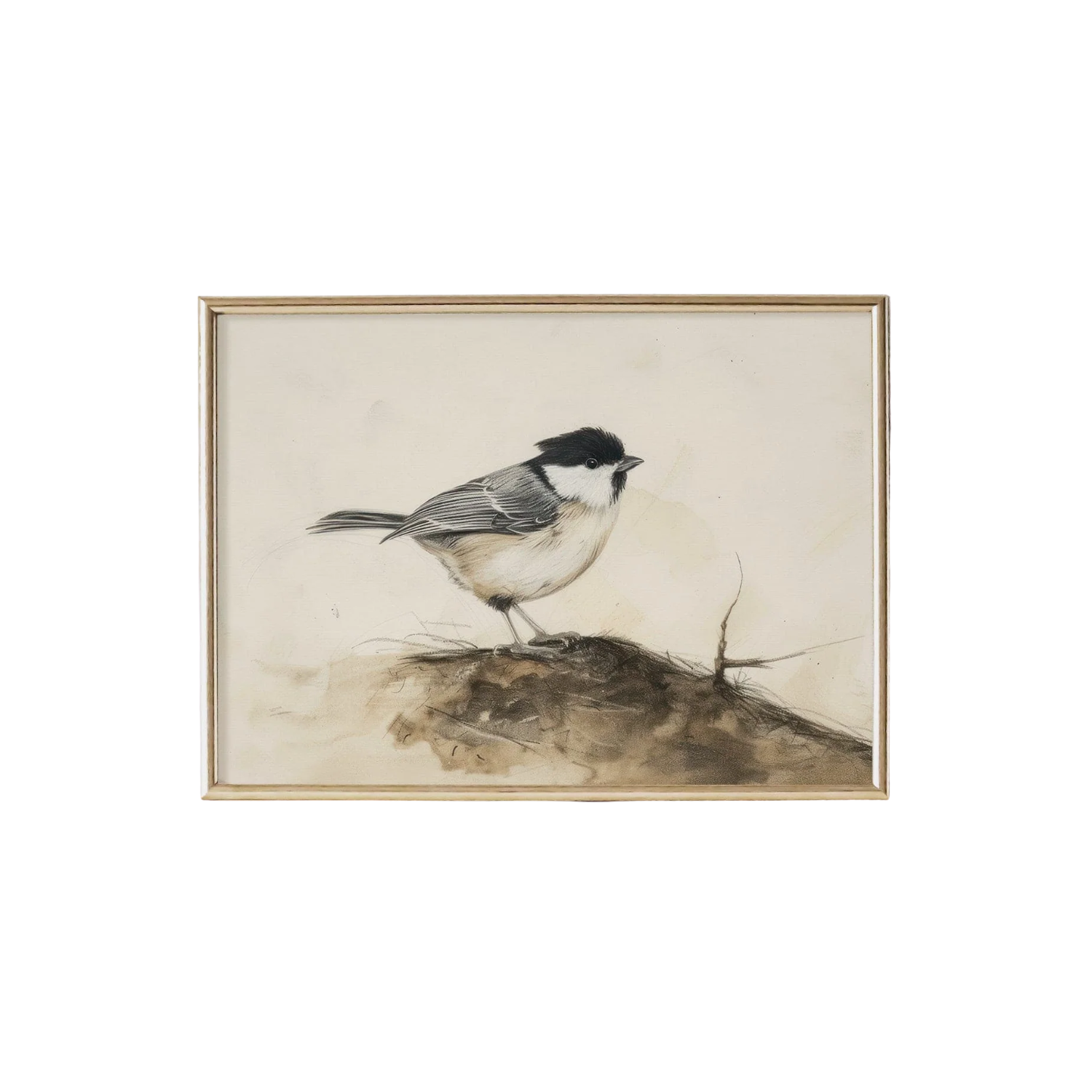 Perched in quiet stillness, our Gentle Perch art print captures the delicate beauty of a lone songbird resting on the earth. Soft, expressive brushstrokes and fine pencil details bring out the bird’s graceful form, highlighting its downy feathers and watchful gaze. The neutral tones and airy composition create a sense of calm, making this piece a perfect addition to spaces that celebrate nature’s quiet moments. Whether for a rustic-inspired home or a serene retreat, Gentle Perch brings warmth, simplicity, and the charm of the natural world into any space.