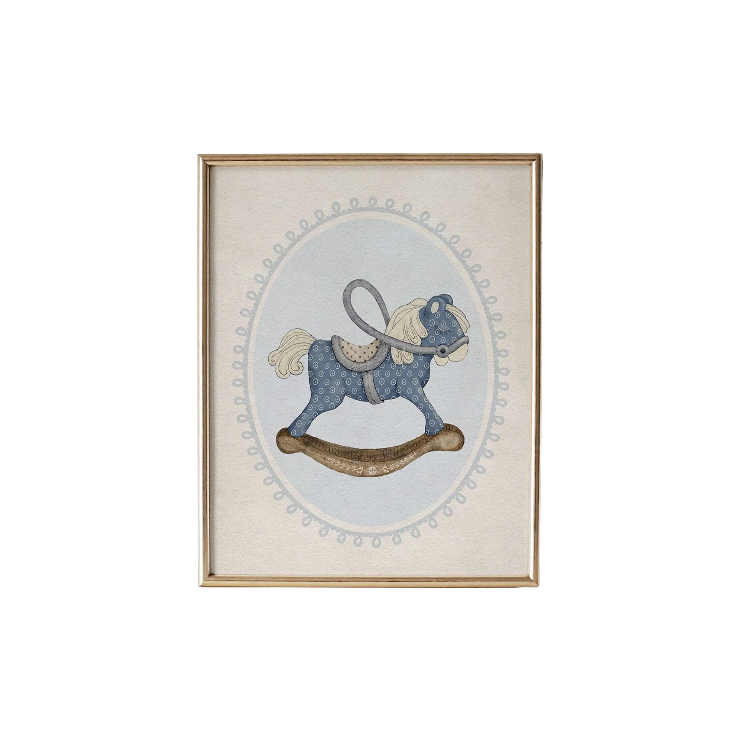 Delight in the timeless appeal of our Avery the Rocking Horse Art Print, featuring a beautifully detailed blue design with intricate patterns and warm beige accents. It's a perfect addition to nurseries, playrooms, or children’s spaces. This charming piece captures nostalgia and creativity, creating a cozy and inviting atmosphere that will be treasured for years to come.