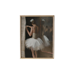 Our Behind the Curtain art print captures the quiet anticipation of a dancer moments before stepping into the spotlight. The soft glow of light brushes against delicate tulle, while the reflection in the mirror hints at the movement and grace about to unfold. With moody tones and expressive brushstrokes, this artwork evokes the elegance, discipline, and emotion of the ballet world. Perfect for those who appreciate the artistry of dance, Behind the Curtain adds a touch of timeless beauty and quiet drama to any space.