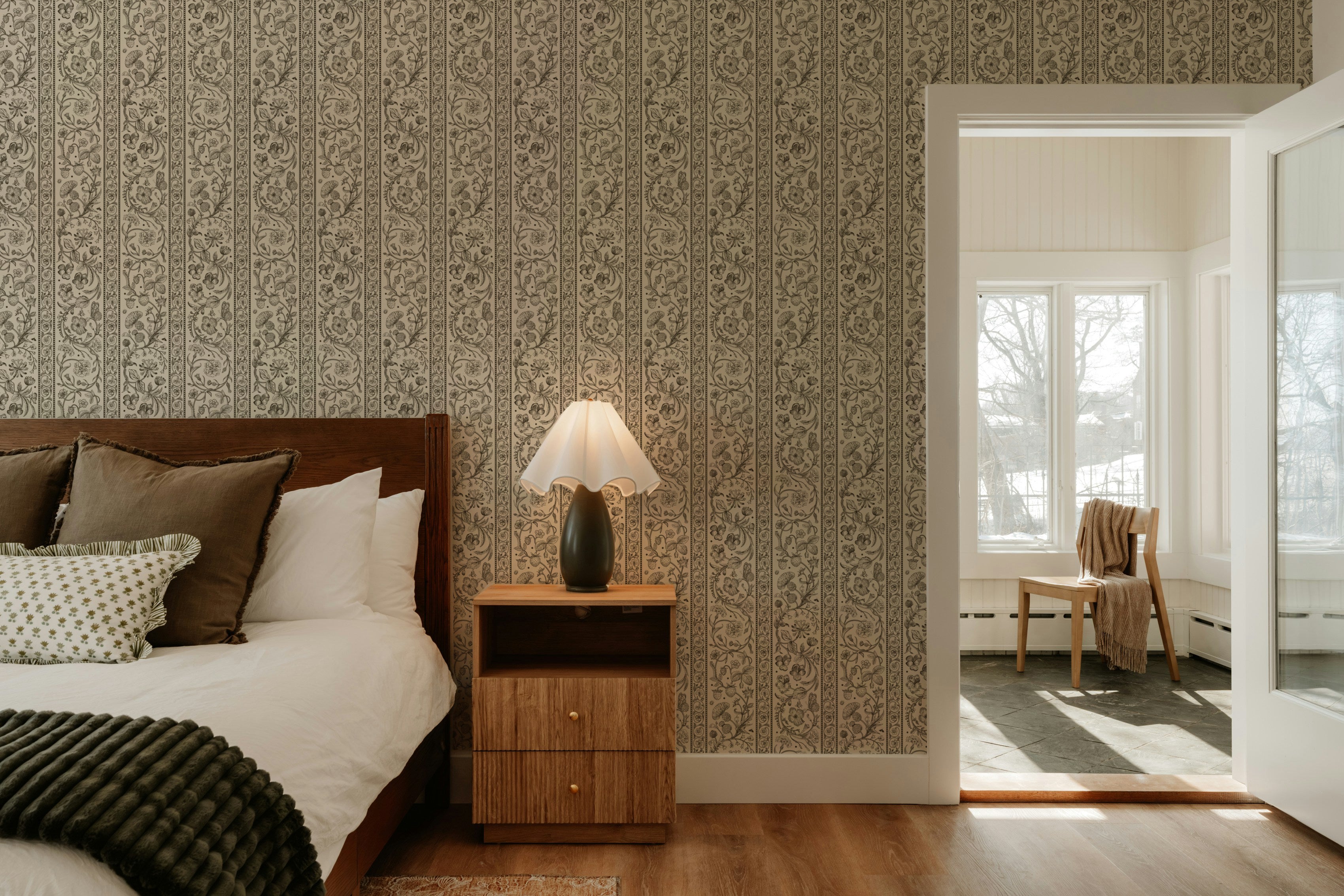 Perfect for dining rooms, bedrooms, or hallways, this pattern balances classic detailing with a clean, tailored layout - making it easy to style across both traditional and modern interiors.