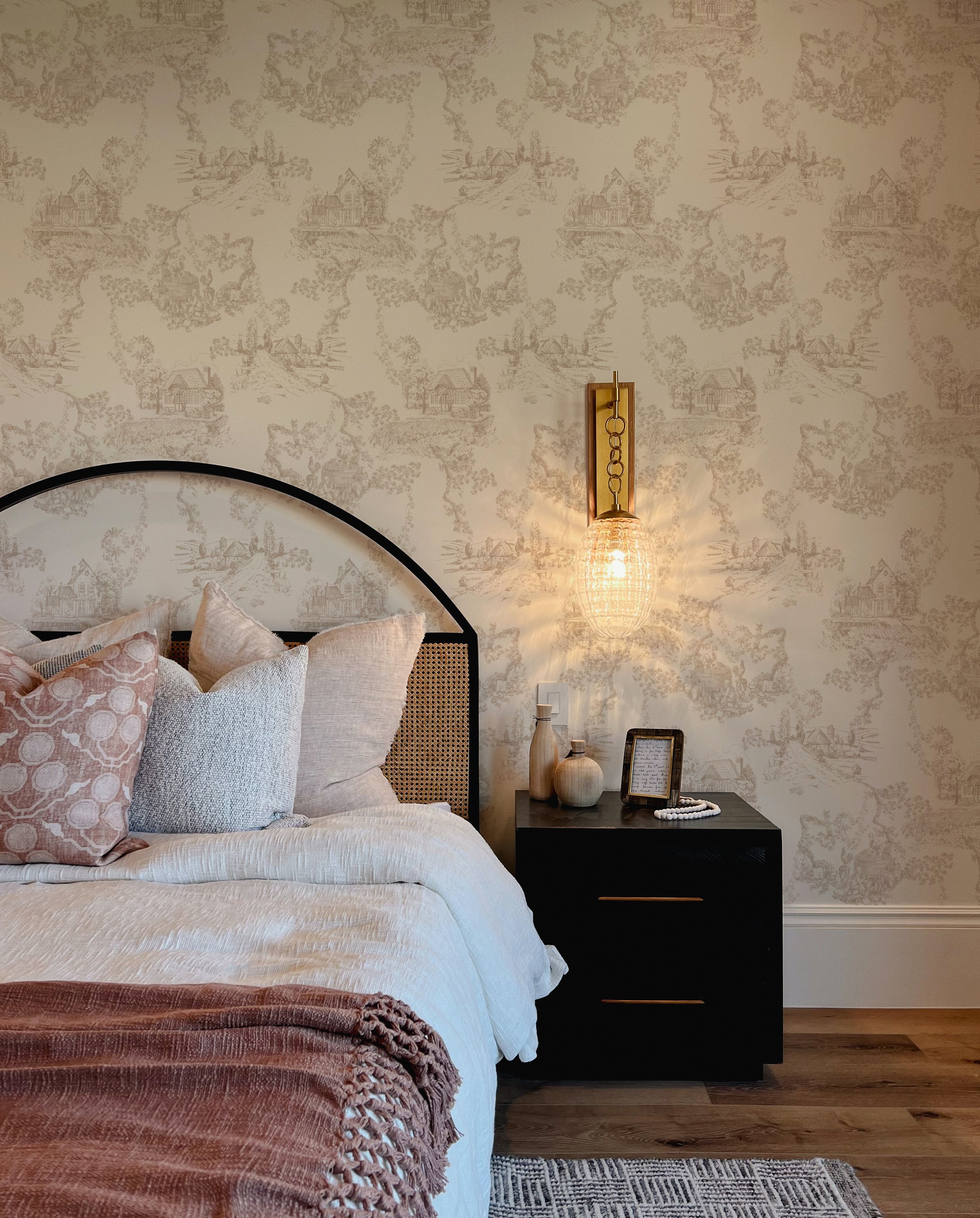 Printed on your choice of our premium wallpaper materials, our Cottage Toile adds a sense of calm to any space — from cozy bedrooms and hallways to charming dining rooms and powder baths. Its subtle detailing makes it just as beautiful up close as it is across a full wall.
