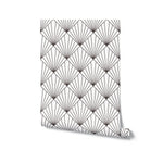 A bold nod to Art Deco elegance, our Empire Lines is a striking geometric wallpaper that channels the glamour of the Jazz Age. Featuring a rhythmic fan motif arranged in a diamond grid, this design exudes sophistication with its clean, architectural precision. Perfect for accent walls, powder rooms, or any space in need of a refined statement, Empire Lines brings a timeless, metropolitan edge to modern interiors.