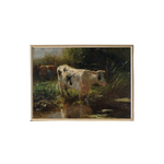 Bring the serene beauty of the countryside into your home with the 'Spotted Cow - Vintage Art Print.' This exquisite artwork captures a tranquil scene of a black-and-white cow standing near a reflective pond, surrounded by lush greenery and soft, natural lighting. Available in both unframed and elegantly framed options, this vintage print adds a touch of rustic charm and pastoral tranquility to any room. Ideal for nature lovers and those who appreciate vintage art, 'Spotted Cow' makes a perfect addition to living rooms, kitchens, and offices. Elevate your decor with this timeless piece from Timberlea Interiors.