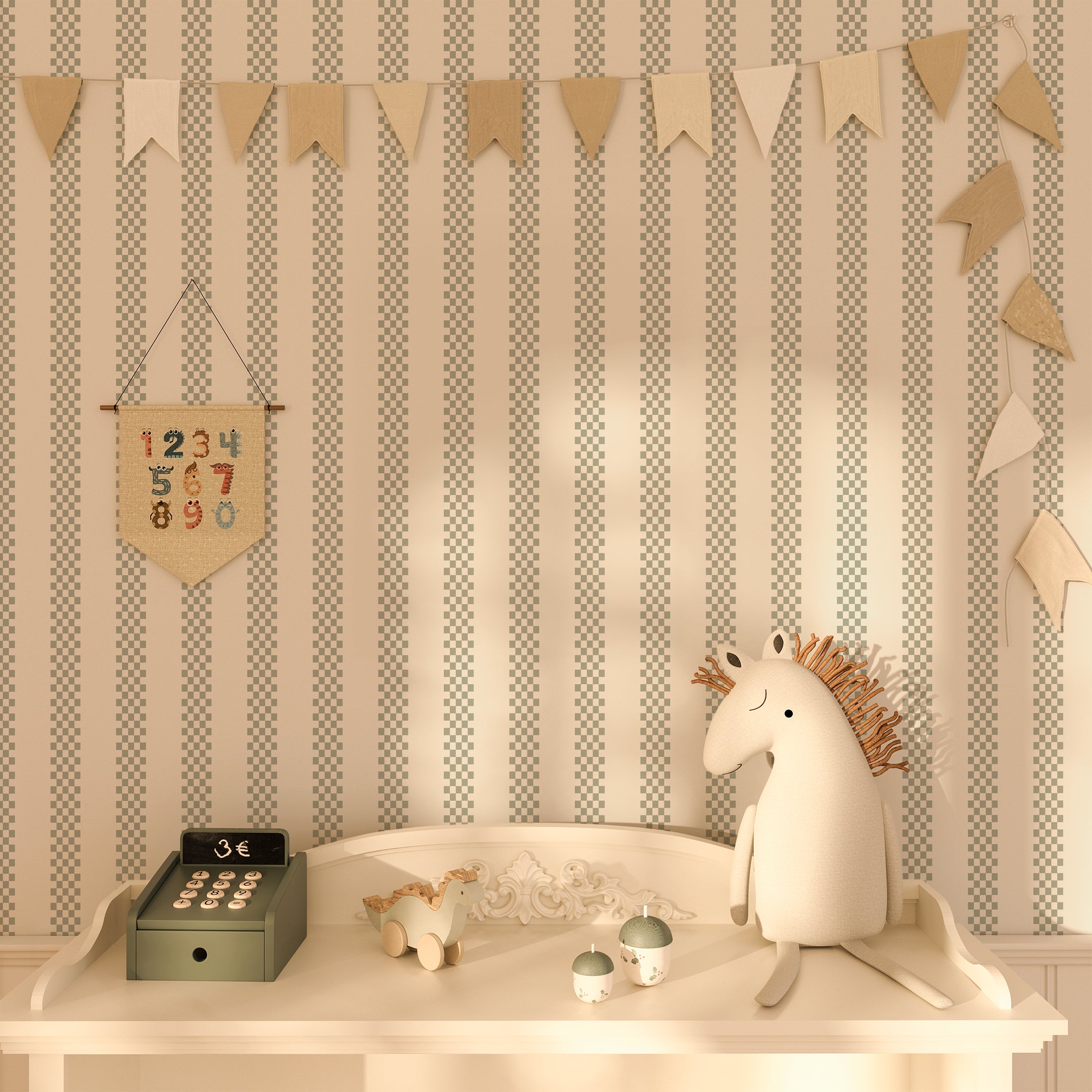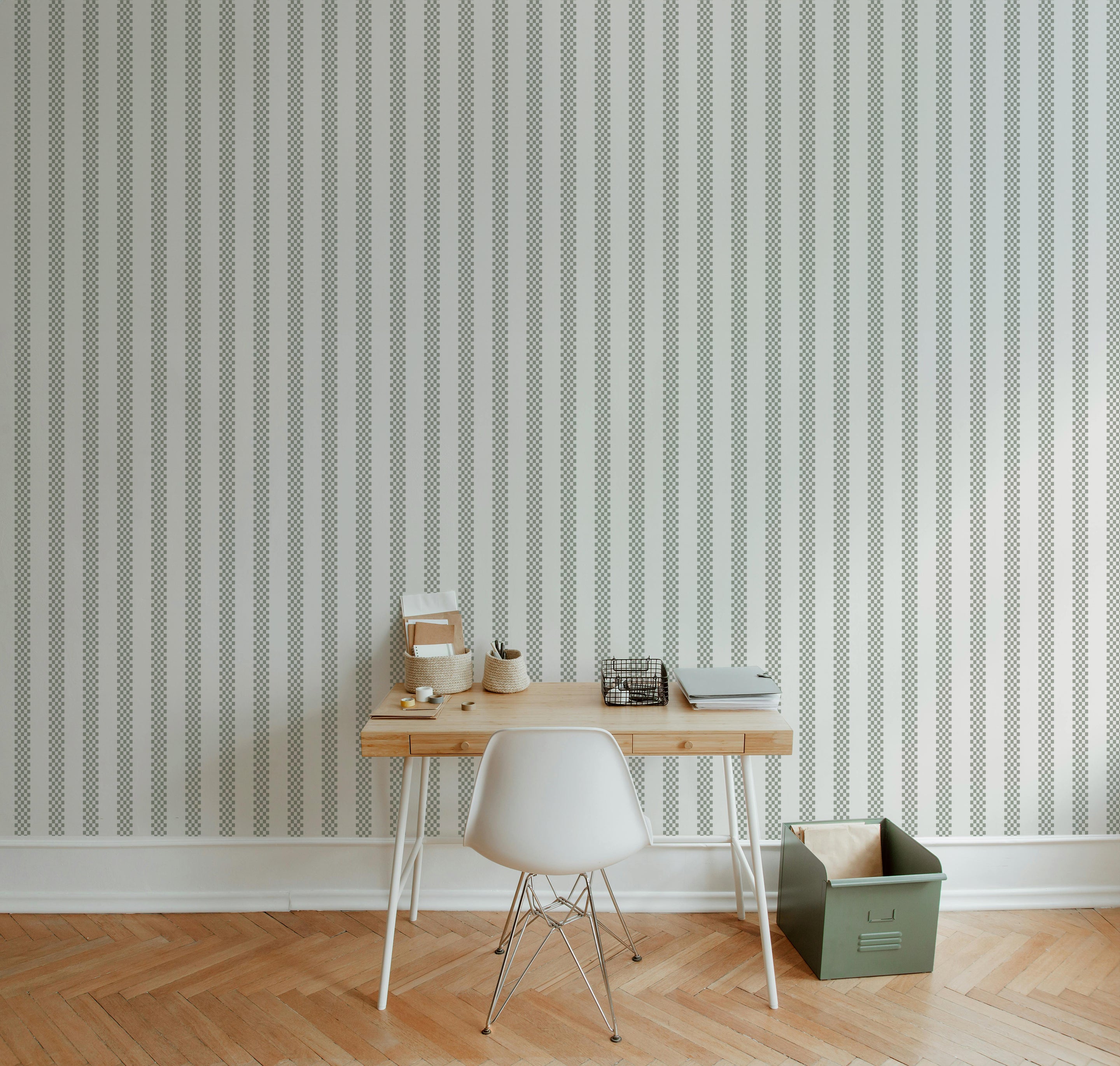 This stripe wallpaper is ideal for those looking for a timeless alternative to plain walls. The small-scale check detail adds depth and texture while remaining understated, making it suitable for both playful and more refined interiors. Use it on all four walls for a cohesive look or as a feature wall to introduce subtle pattern.