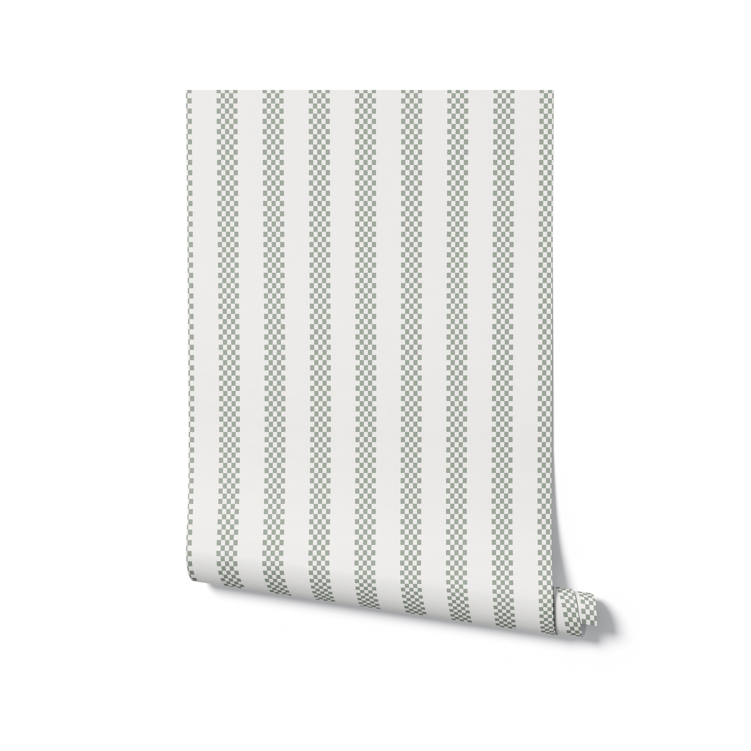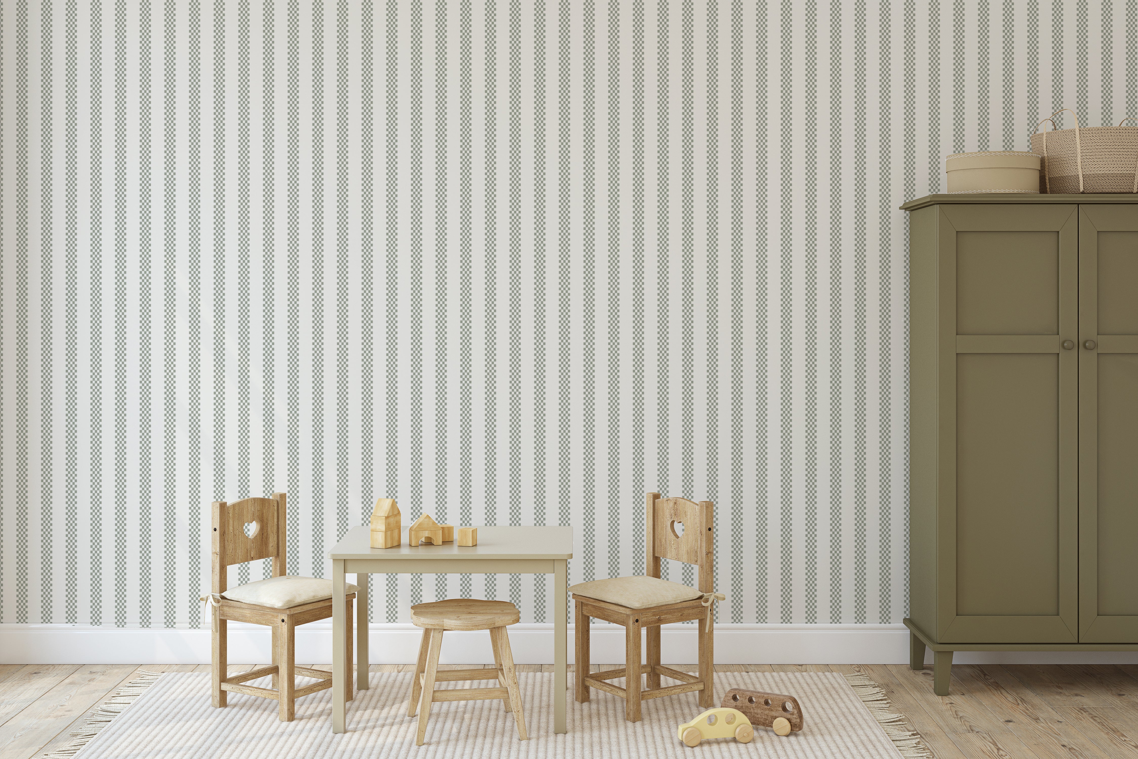 Our Storybook Stripe wallpaper is a fun, striped wallpaper featuring a subtle check pattern woven into each vertical line.