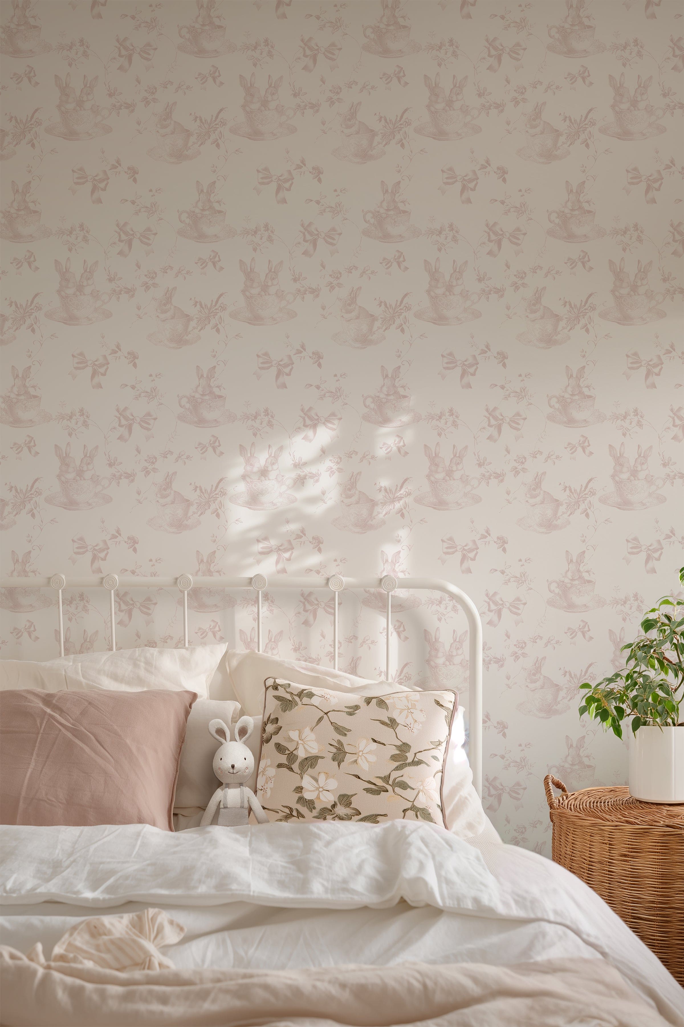 Step into a world of charm and whimsy with our Tea Time Tales Wallpaper. Featuring adorable bunnies nestled in vintage teacups, delicate bows, and floral accents, this design brings a storybook feel to any room. Perfect for nurseries, playrooms, or anyone who loves a hint of nostalgia, Tea Time Tales creates a warm and inviting atmosphere. Its soft, neutral palette ensures it blends seamlessly with various decor styles, making it an enchanting choice for children’s rooms or cozy spaces